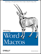 Accordingly, we have changed the title of the book to the more user-friendly Writing Word Macros. This also brings the title in line with my book Writing Excel Macros (also published by O'Reilly).