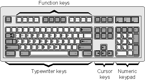 Figure 9.1 shows a close-up of a typical modern PC keyboard. Actually, keyboard configurations have varied over the years, starting with a PC keyboard that had only 83 keys. These days, most modern keyboards have a little over 100 keys. While there is still some variation in keyboard design, it does not affect the overall functioning of the keyboard, so we will not dwell on these minor differences.